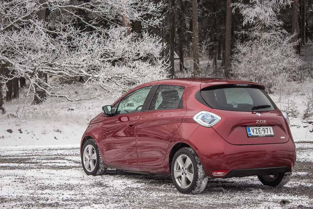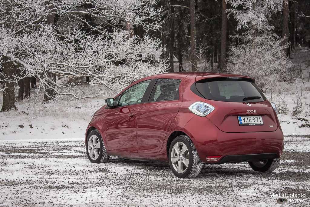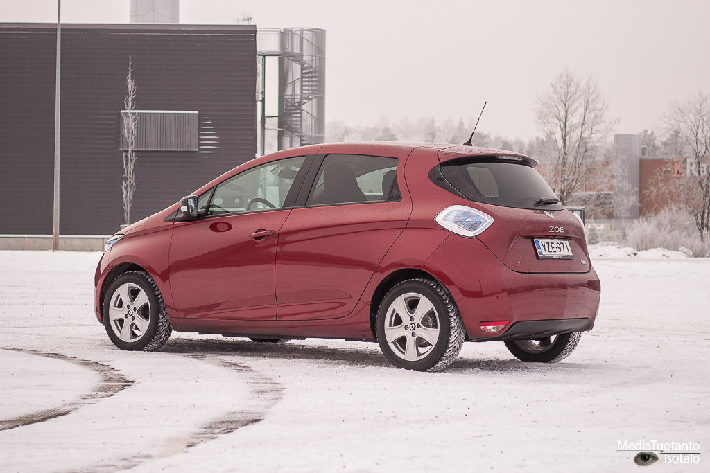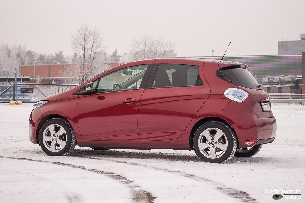 Renault Zoe on keskimmäinen valmistajan kolmesta sähköautomallista (Twizy, Zoe ja Kangoo ZE). Zoe on rakennettu samalle pohjalevylle Clion kanssa mutta tämä on Clioa 10 cm korkeampi. Sähköautojen toimintasäde ilmoitetaan usein NEDC syklin mukaan (New European Driving Cycle joka liittyy päästömittauksiin) ja Zoessa toimintasäde on tämän mukaan 400 km. Renault onneksi ilmoittaa tiedoissa jo suoraan, että todellisuudessa toimintasäde on lämpimissä olosuhteissa 280 – 300 km. Lämpimissä – minä otin auton koeajoon tammikuussa kun lumi on maassa ja pakkastakin oli viiden ja kymmenen asteen välillä.