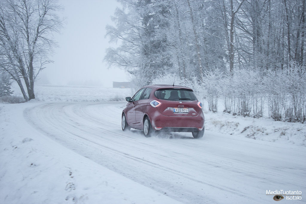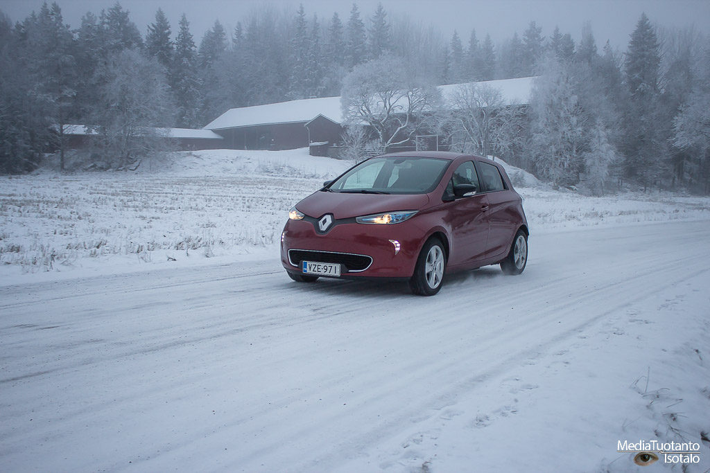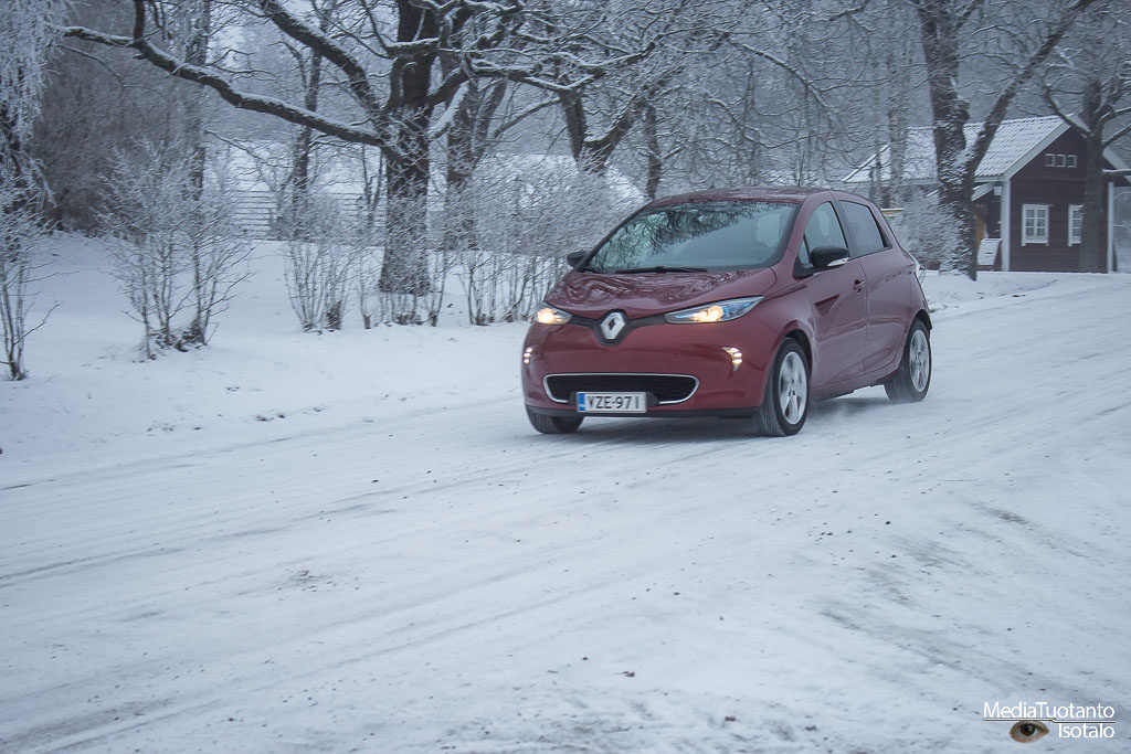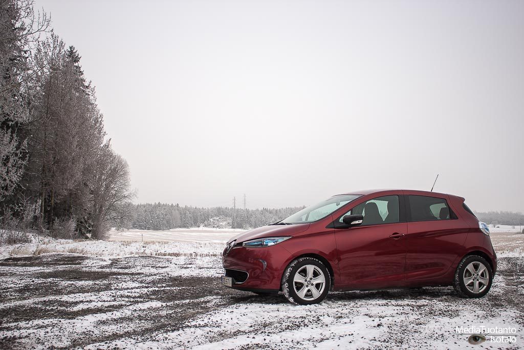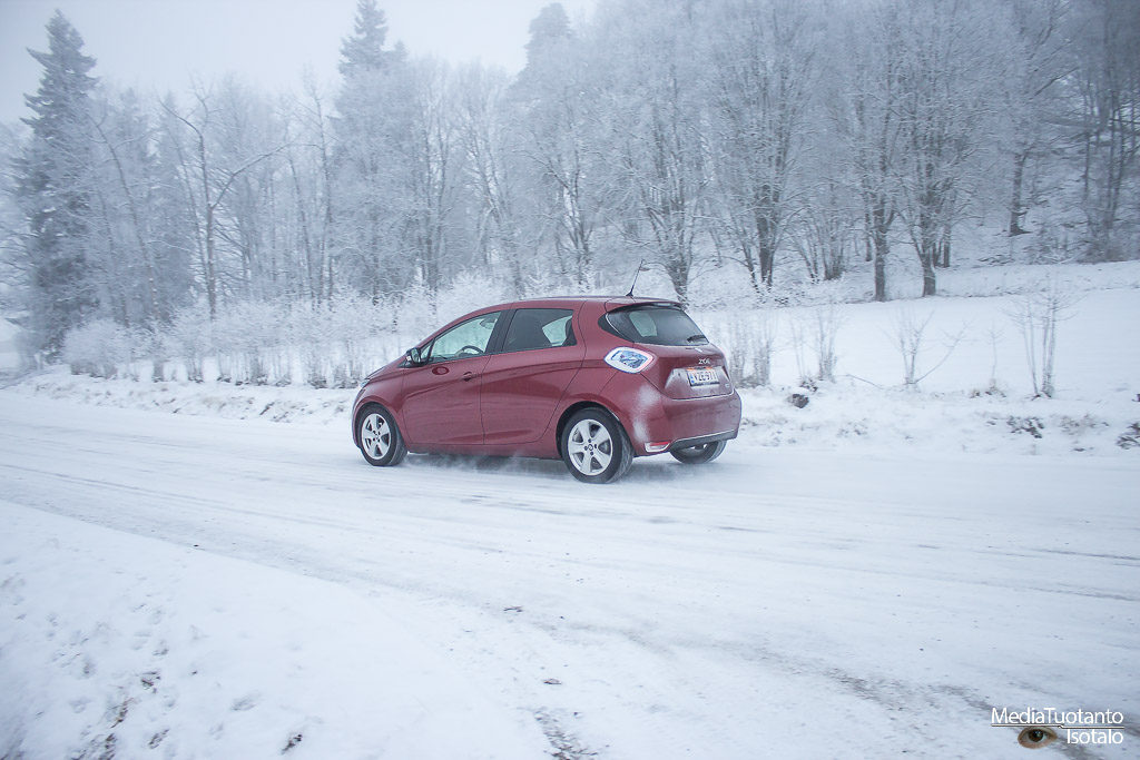 Renault Zoe on keskimmäinen valmistajan kolmesta sähköautomallista (Twizy, Zoe ja Kangoo ZE). Zoe on rakennettu samalle pohjalevylle Clion kanssa mutta tämä on Clioa 10 cm korkeampi. Sähköautojen toimintasäde ilmoitetaan usein NEDC syklin mukaan (New European Driving Cycle joka liittyy päästömittauksiin) ja Zoessa toimintasäde on tämän mukaan 400 km. Renault onneksi ilmoittaa tiedoissa jo suoraan, että todellisuudessa toimintasäde on lämpimissä olosuhteissa 280 – 300 km. Lämpimissä – minä otin auton koeajoon tammikuussa kun lumi on maassa ja pakkastakin oli viiden ja kymmenen asteen välillä.