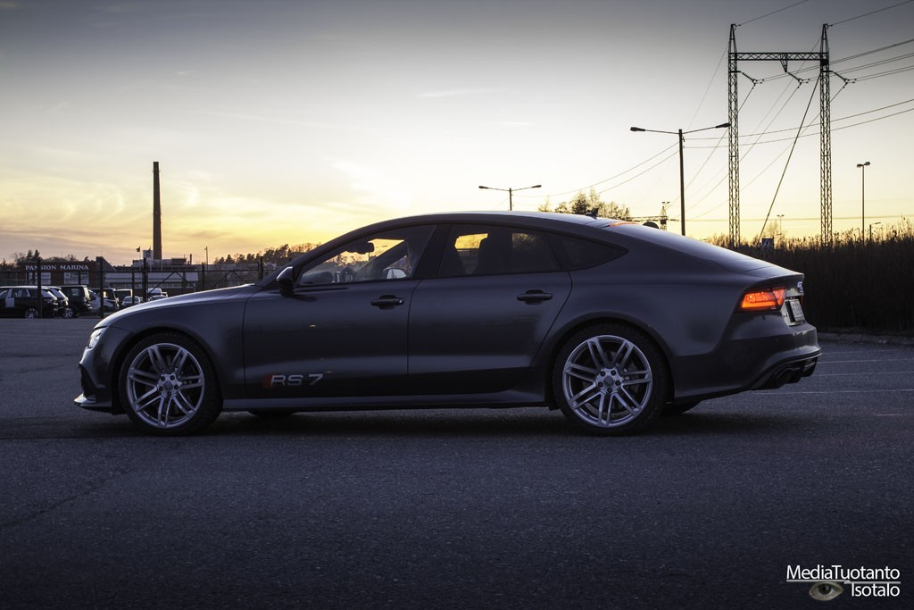 Pääasiassa autojen testaaminen on tavallisten perusautojen testausta, juuri sellaisten autojen joita ihmiset yleensä ostavatkin. Joskus eteen tulee kuitenkin tilanteita, jolloin testattava auto on hyvin kaukana siitä mihin tavallinen kansalainen rahansa laittaa. Tällöin myös oma innostus ja odotukset nousevat aivan uudelle tasolle ja toivottavasti tämä näkyy myös ulospäin. Nyt sain jotain sellaista, joka rehellisesti sanottuna vuorotellen pelottaa ja ihastuttaa. Ihastuin jokunen vuosi sitten Audi A7:aan ja kirjoitinkin siitä pienen artikkelin tänne. Ajokokemus oli lyhyt mutta herätti kiinnostuksen kokeilemaan autoa jossain vaiheessa paremmin. Nyt sain mahdollisuuden testata tuon auton, tosin ”hieman” tehokkaampana versiona. Alle tuli nimittäin Audi RS7.