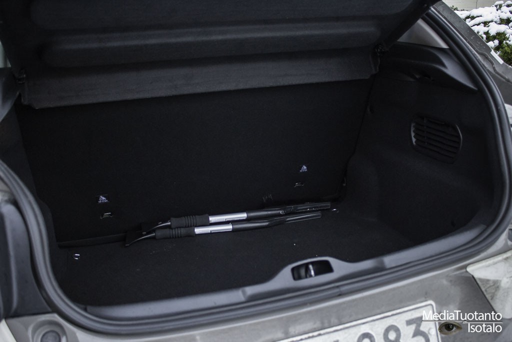 Polttoaineen kulutus on erittäin mieluinen. Yhdistetty kulutus tehtaan mukaan on 3,6 litraa sadalla mutta tasaisella vauhdilla ajettaessa näytti hetkellinen kulutus alle 2 litran lukemia. Viikon koeajoaikana en saanut 45 litran tankkia kuin puolilleen ja kilometrejä tuli kuitenkin noin 500. Täyteen tankattuna ajotietokone näyttääkin yli 1000 kilometrin toimintasädettä.