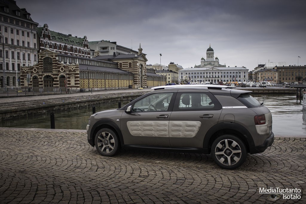 Citroen C4 Cactus on juuri tälläinen, sanoisinko hieman ideoilla leikittelevä malli. Citroenilta on tälläisia kokeiluja tullut kyllä ennenkin. Cactus on C4:n pohjalle tehty crossover-malli. Muotoilu on nimestään huolimatta aika pyöreä ja piikikkyydestä muistuttaakin lähinnä kattokaiteet. Ulkonäössä on erikoisuutena Air-Bump pehmusteet kyljissä ja kulmissa. Nämä on suunniteltu vähentämään vahinkoja, jotka aiheutuvat hiljaisissa nopeuksissa kuten pysäköintialueilla. Pehmusteet pystyy helposti vaihtamaan jos ne ovat vaurioituneet toisin kuin maalipinnan korjaaminen.