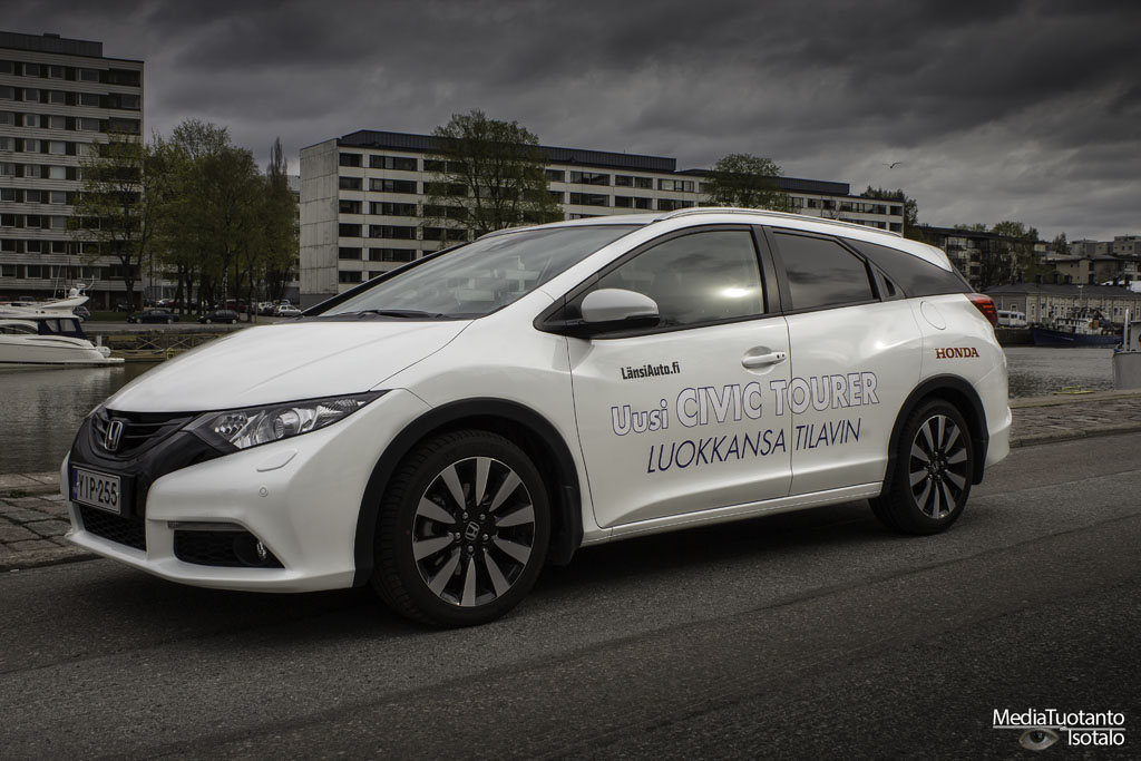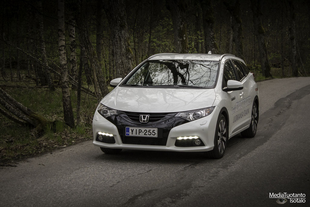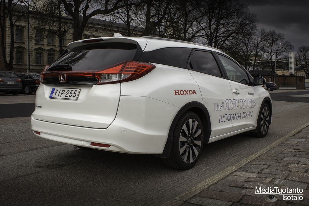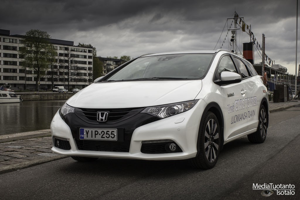 Nykyisessä Honda Civicissä on hieno futuristinen mittaristo ja se onkin houkutellut varmasti paljon ostajia. Yksi tärkeä asia siitä on kuitenkin tähän asti puuttunut, nimittäin kunnollinen tavaratila. Honda korjasi asian keväällä 2014 julkaisemalla Euroopan markkinoille suunnatun farmarimallin eli Honda Civic Tourer:in. Sain Turun LänsiAutosta pikaiseen testiin 1.6 litraisella dieselmoottorilla murisevan ja parhaalla Elegance varusteilla olevan Tourerin toukokuun loppupuolella.