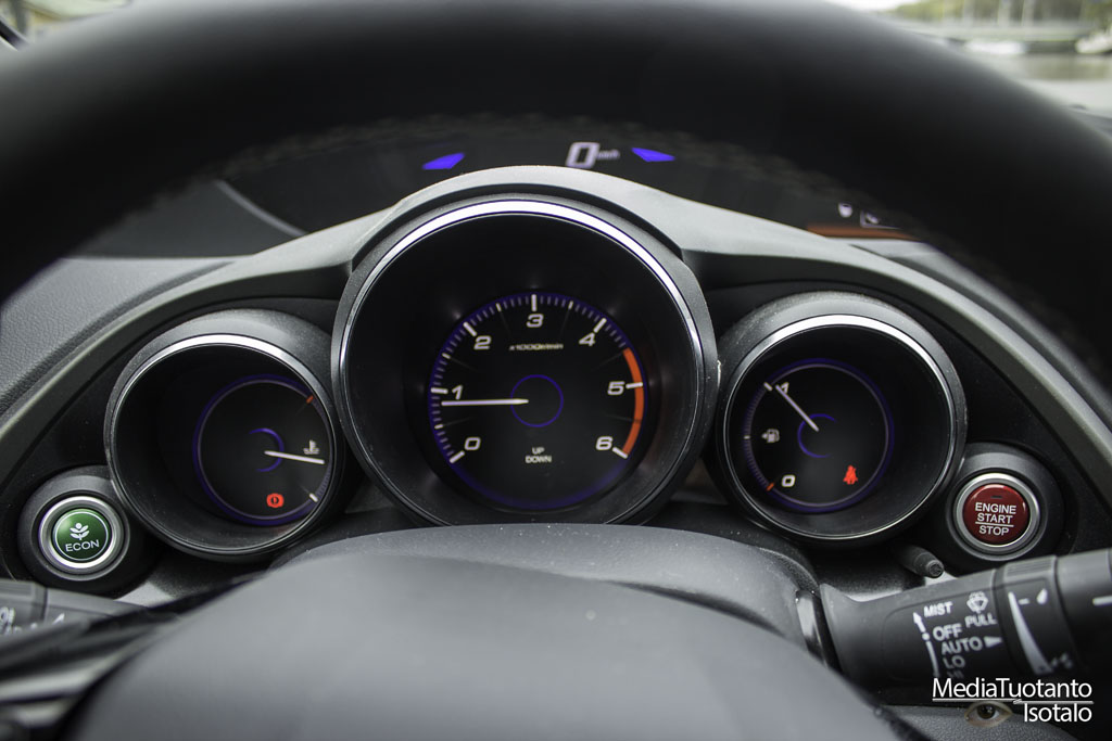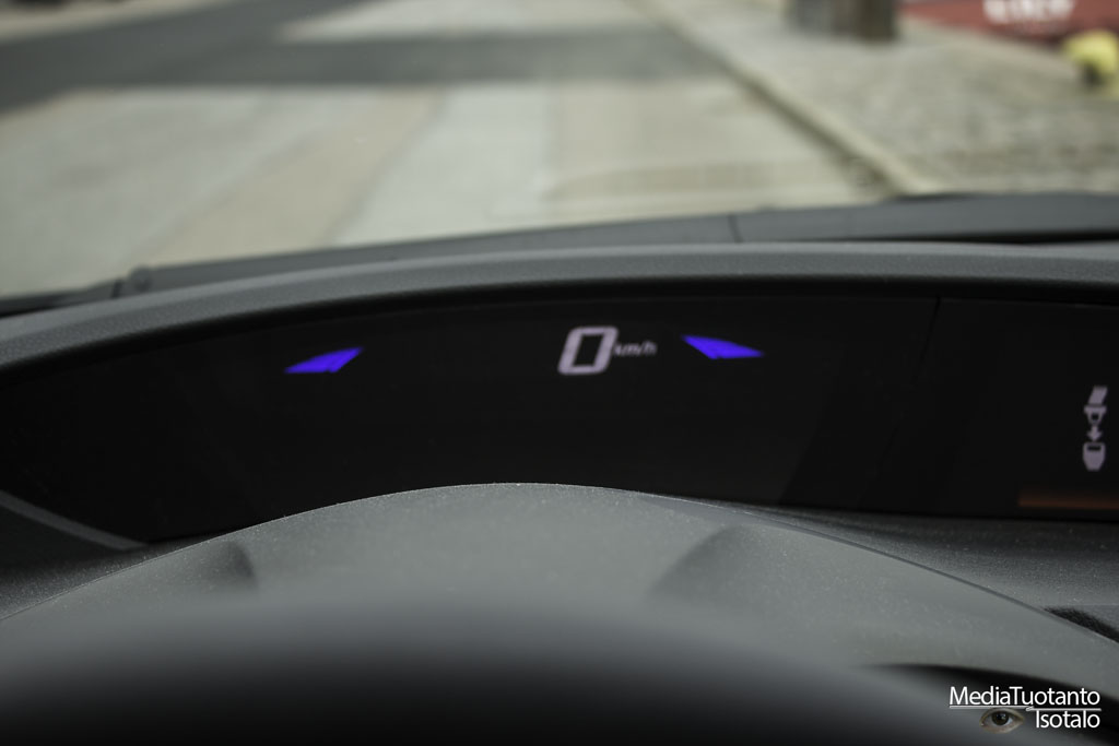 Varsinaisessa mittaristossa on ainoastaan lämpötila, moottorin kierrokset sekä polttoaineen määrä. Nopeus ja muut tiedot löytyy hieman katsetta nostamalla, erittäin leveästä näytöstä miltei tuulilasin alareunassa. Tämä on futuristisen ja väritykseltään miellyttävän näköinen. Lisäksi sijainnin ollessa lähempänä lasia, voi nopeudenkin tarkistaa helpommin kun katsetta ei tarvitse laskea niin alas.