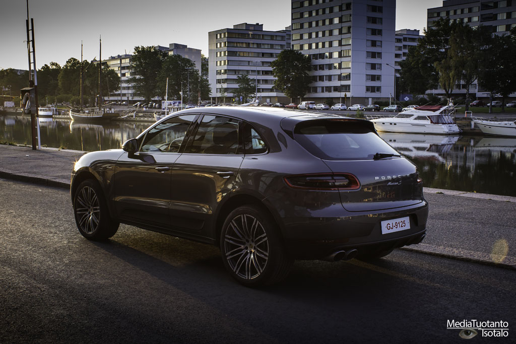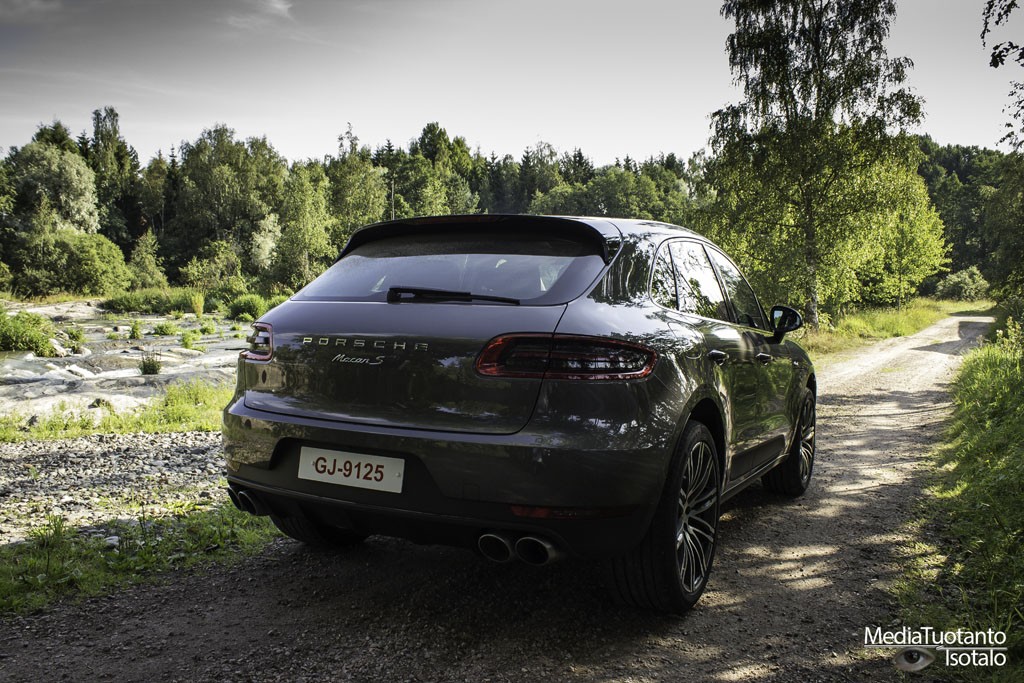 Maasturimaiseksi autoksi Macan on sulavan näköinen ja suuret vanteet leveine renkaineen paljastaa todellisen luonteen. Tätä ei ole tarkoitettu umpimetsään. Ohjaus on jämäkkä ja auto kulkee kuin kiskoilla, oli alustana sitten asfalttitie tai hieman huonokuntoinen soratie. Testasimmekin autoa ajamalla Hämeen Härkätien Turusta Hämeenlinnaan ja tuolle välille osui kaikenlaista tietä.