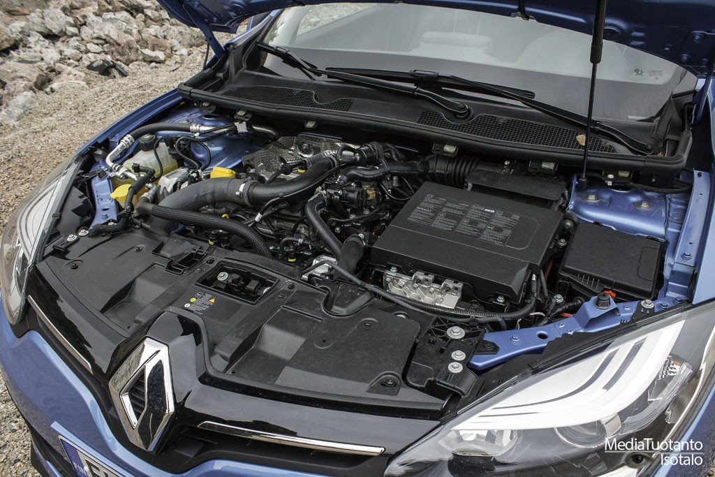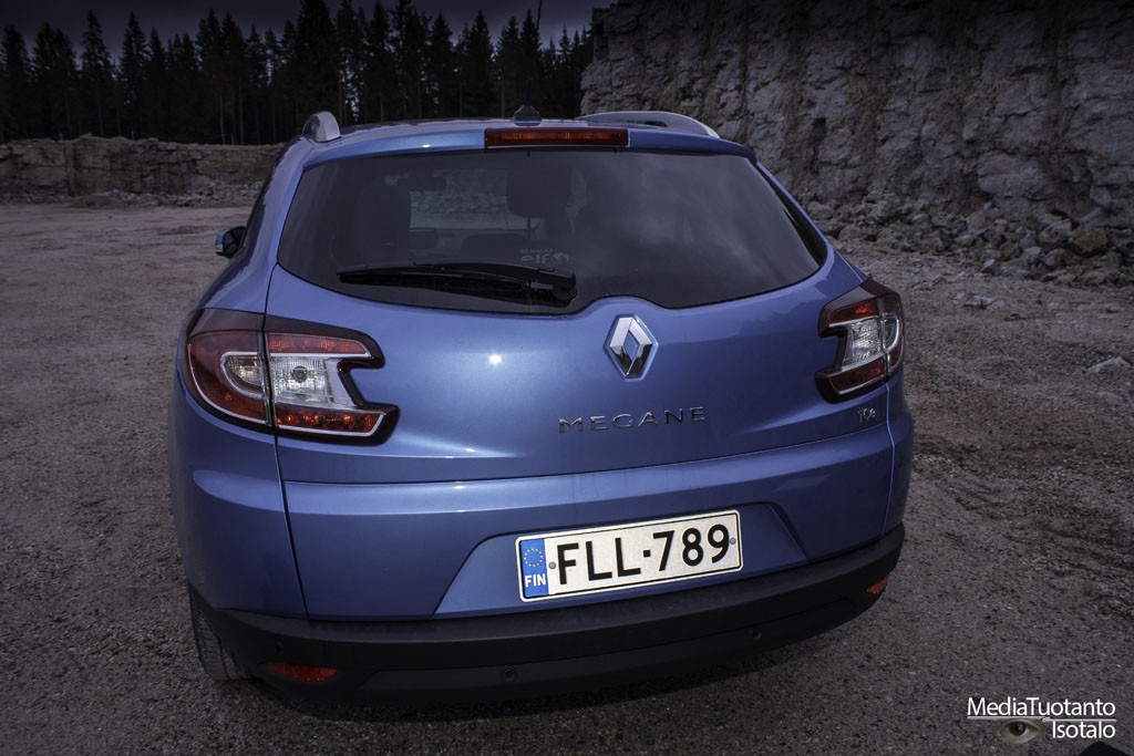 Megane onkin saanut mukavaa jämäkkyyttä ohjaustuntumaan sekä mukavuutta istuimiin. Ulkonäkö on sulavalinjainen edestä, päältä ja takaa. Kyljet sen sijaan ovat kulmikkaammat kuin esimerkiksi Capturissa. Koeajossa ollut Megane oli 1.2 litran moottorilla. Tässä kohtaa kaikilla vanhan koulukunnan ihmisillä nousee kulmakarva ylös. Eihän tuon kokoinen moottori voi liikuttaa perheautoa! Renault mainostaa käyttävänsä F1 teknologiaa hyväksensä ja miksei siinä voi jotain totuutta ollakin. Joka tapauksessa turbolla tuosta pikkumoottorista on saatu kutitettua ulos 130 hevosvoimaa. Se saadaan johdettua pyöriin sen verran hyvin, että tehon tuntu on havaittavissa myös ratin takana. Ohituksissa ja moottoritien rampeissa kiihdytettäessä moottori vie autoa eteenpäin yhdessä EDC-automaatin kanssa todella ripeästi. Tämä vaatii kuitenkin hieman kaasun hallintaa. Jos kaasupolkimen survaisee lattiaan kuin ranskalaiset rypäleitä talloessaan, jää vaihteisto miettimään oikeaa vaihdetta ja pääsääntöisesti valitsee liian pienen. Tämä hidastaa kiihdytystä ja nostaa kierrokset lähelle punarajaa. Haluttu kiihtyminen saavutetaan rauhallisella kaasun käytöllä.