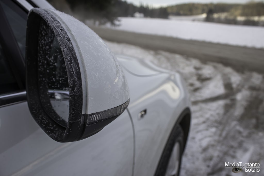 Koeajoreitille osui kaikenlaista tietä, umpimetsää lukuunottamatta. Vaihteiston maasto-asentoa testasimme pienellä mökkitiellä ja mäkihidastusta siihen kuuluneella jyrkällä mäellä. Ryömintä sujui vaivattomasti ja 360-asteen kameranäkymä auttoi auton ohjastamisessa kapealla väylällä. Mäkihidastin taas oli erittäin tehokas ja se olisi varmasti toiminut hyvin paljon vaativammassakin paikassa.
