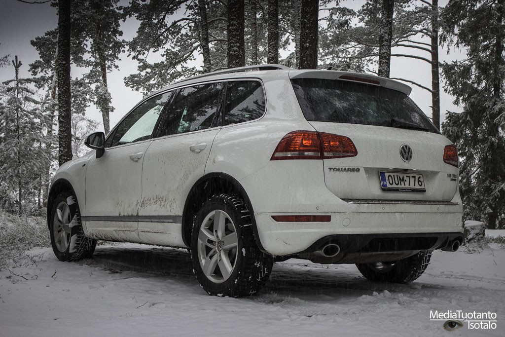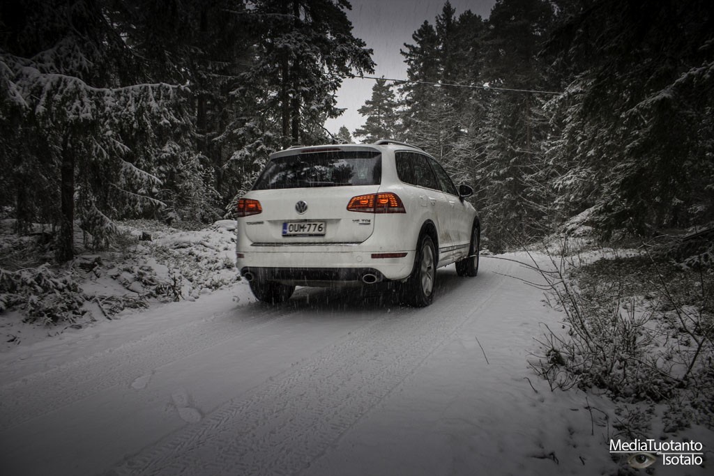 Touareg ei ole kuitenkaan mikään halpa auto. Koeajoyksilön hinta oli 119 tuhatta euroa. Toki sillä rahalla saa mukavan auton, jolla pääsee melkein mihin vaan. Itselleni tämä auto ei ehkä sopisi juurikin tunnottoman ajon takia. Tosin viimeisenä testipäivänä saapui takatalvi lumimyrskyn saattelemana ja hetken aikaa ajokeli oli järkyttävän huono. Siinä kohtaa Touareg näytti kyntensä ja sillä ei ollut minkäänlaisia vaikeuksia liikkua ripeästi. Jopa liikennevaloista lähdettiin lumihangessa kuin mitään lunta ei olisi ollutkaan. Eli mitä huonompi keli, sitä parempana Touareg esittäytyy.