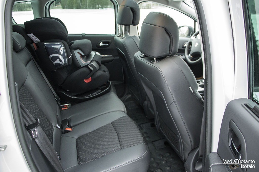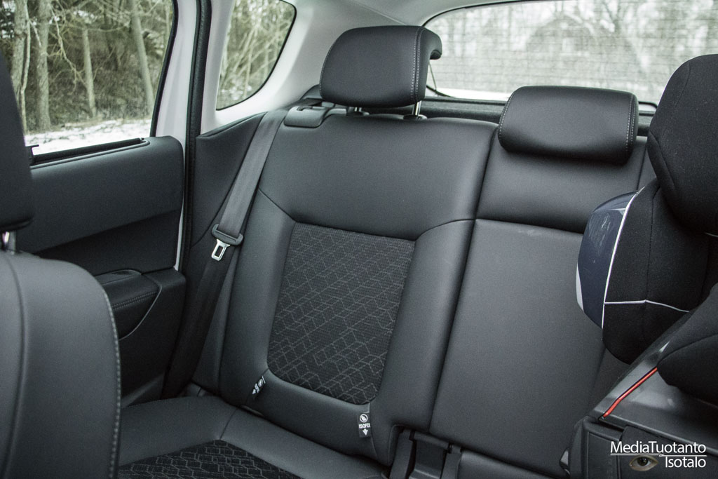 Sisätilat ovat valoisat ja tilavat. Takapenkeillä on mukava istua mutta sivuttaistukea niissä ei ole. Etupenkkien alla on jokin omituinen ”monttu”, johon takapenkillä istuttaessa voi jalka osua ja jäädä tavallaan jumiin hetkellisesti. Tätä ongelmaa esiintyi ainakin auton sisätiloja kuvattaessa. Takapenkkiläisten ikkunat olivat tummennetut ja lisäksi molemmissa laseissa oli alhaalta ylös nostettavat aurinkoverhot.