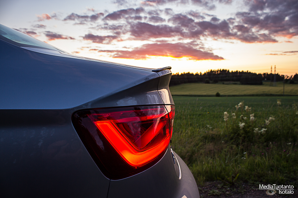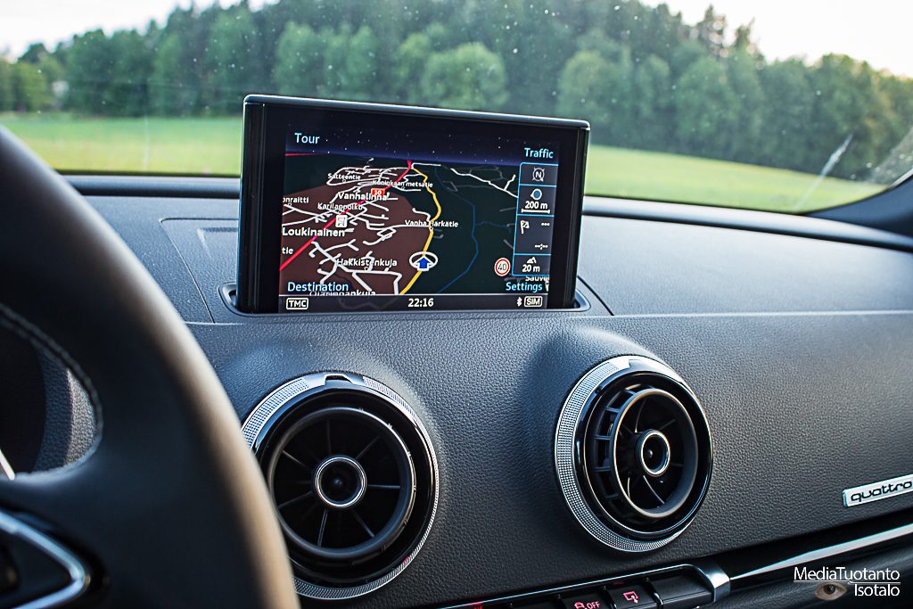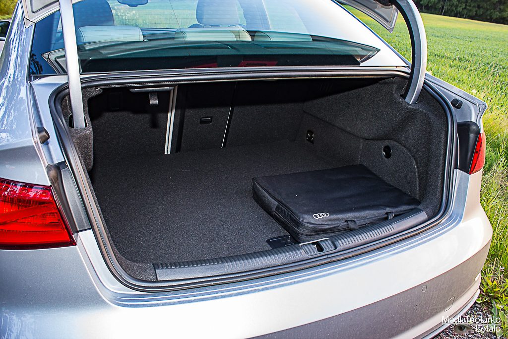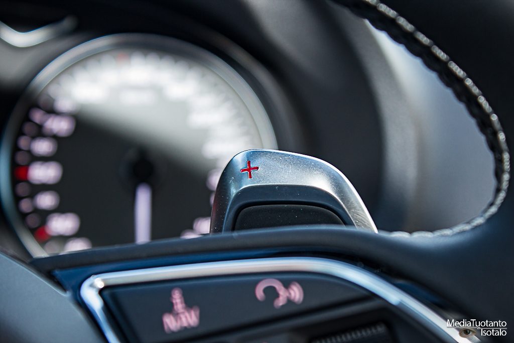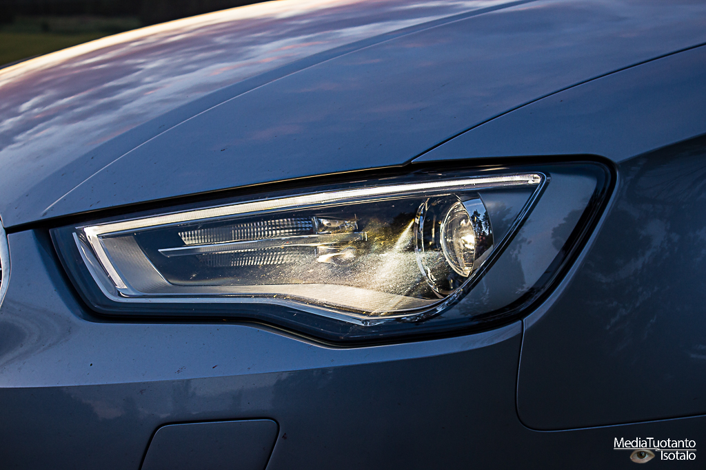 Sisällä hallintalaitteet ja kojetaulu on tuttua Audia, säätimet ovat selkeitä ja niitä on helppo käyttää. Penkit ovat urheilumaiset eli ne tukevat joka puolelta hieman normaalia enemmän. Vaalea nahkapinta penkeissä ja muutenkin vaalea verhoilu tuo valoisan tunnelman sisätiloihin. Tällä värillä on tietysti omat hankaluutensa kurakeleissä tai pienten lapsien suhteen. Taakse mahtuu aikuinenkin istumaan mukavasti mutta lastenistuinta emme tällä kertaa päässeet testaamaan.