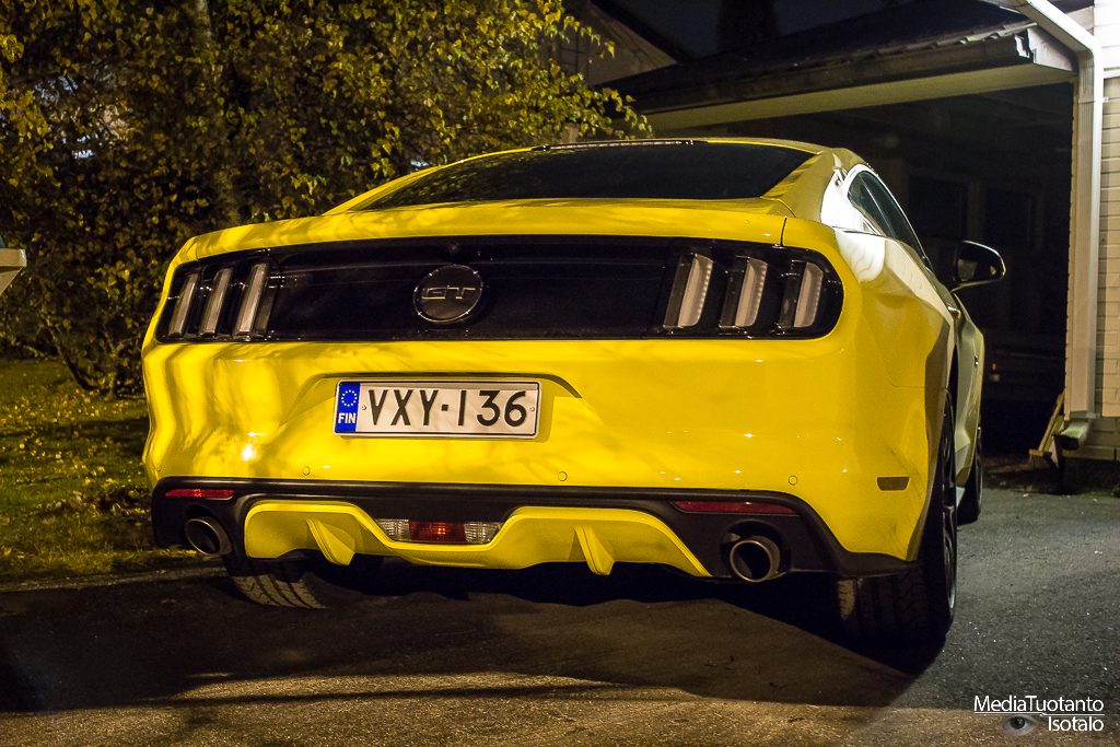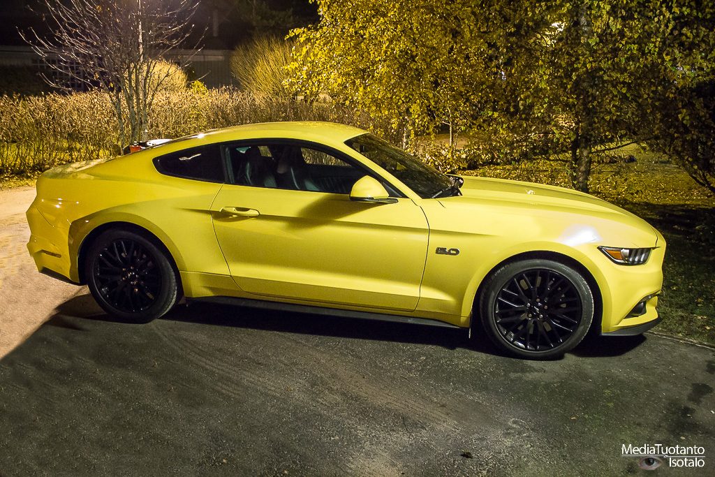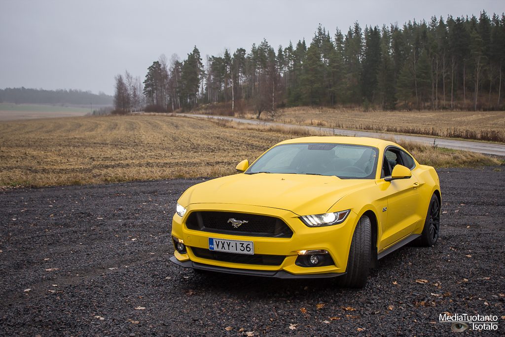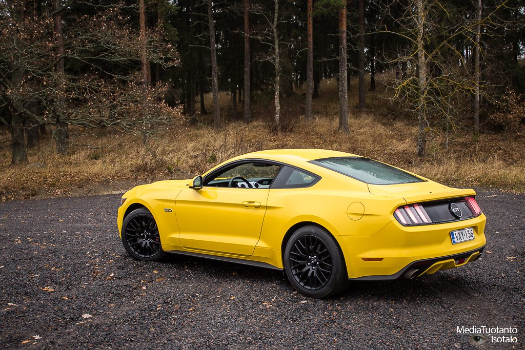 Mustangia tuodaan Eurooppaan kahdella moottorivaihtoehdolla. 2.3 litrainen Ecoboost, joka ilmeisesti jonkun mielestä sopii meille eurooppalaisille paremmin ja sitten se oikea Mustang eli viiden litran V8 moottorilla. Jos kerran saa tilaisuuden ajaa ikonista Mustangia, ei omalla kohdallani ollut pienintäkään epäselvyyttä kumpi sen pitää olla. Sain siis marraskuun alkupuolella testiin Ford Mustang GT:n.