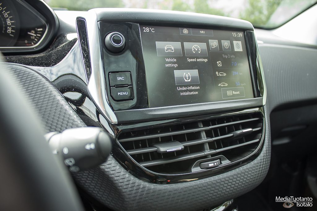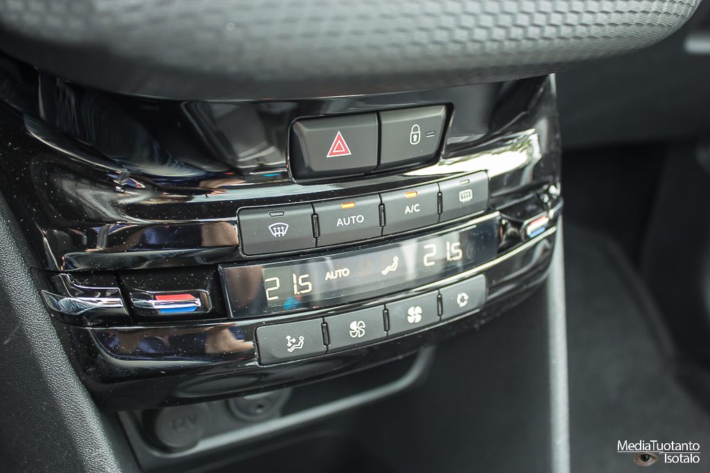 Hallintalaitteet ovat selkeät. Ratissa on rullat ja napit molemmin puolin ja lämpötilansäätö tapahtuu näytön alapuoleisista vivuista. Näyttö toi ensin mieleen hieman Citroen Cactuksen mutta sen liukusäätimiä tässä ei onneksi ollut.